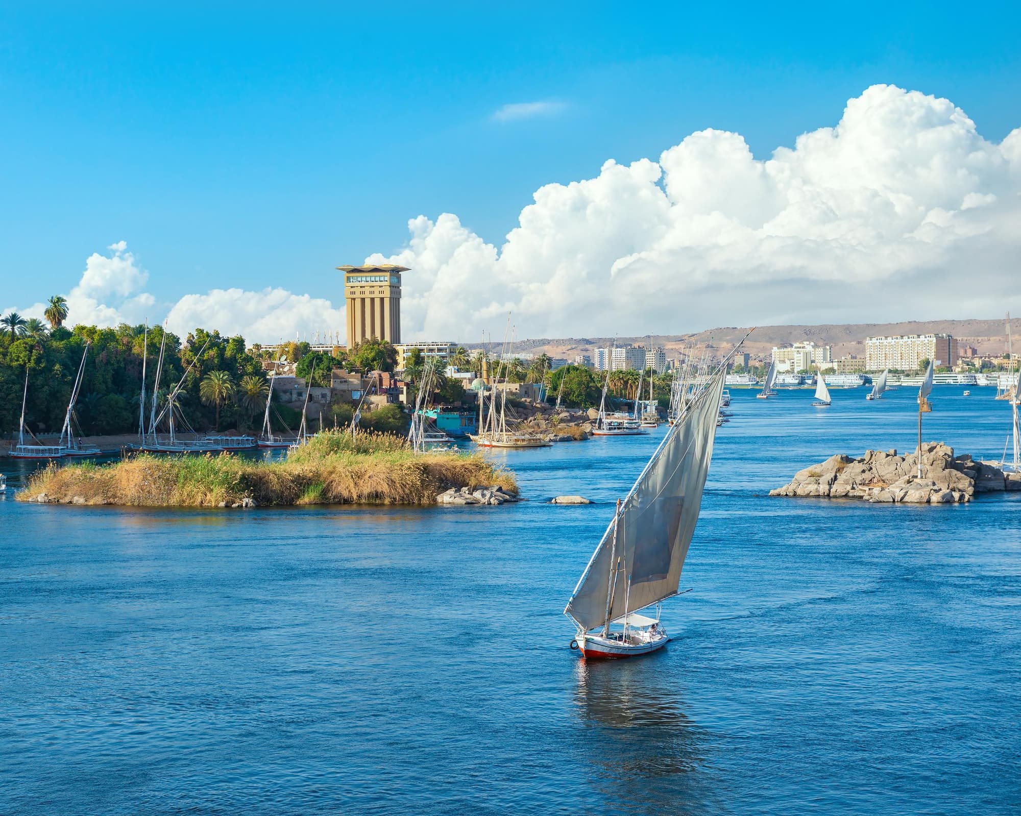 Desayuno y visita al templo de Philae y la Alta Presa de Aswan Comida a bordo, Por la tarde Un paseo por Feluca en El Nilo. Cena y noche abordo.