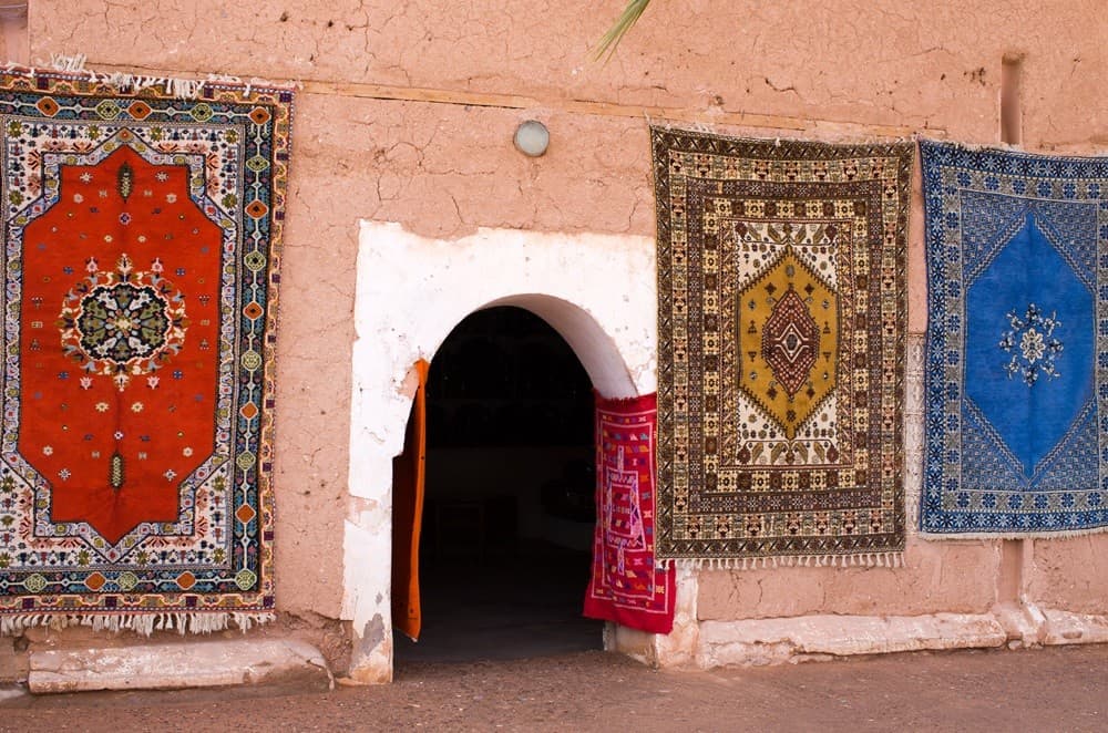 Sunday: Ouarzazate - Zagora After breakfast depart to Taznakht, famous for its Berber carpets, then continue southwards to Agdz where we join again the road Ouarzazate-Zagora. From Agdz to Zagora the road is dotted with palm groves and numerous Kasbahs, most of which are falling in ruins, but some are still worth a visit. Lunch at own expense. Dinner and accommodation in Tizi Desert (12 km away from Zagora), under desert tents.